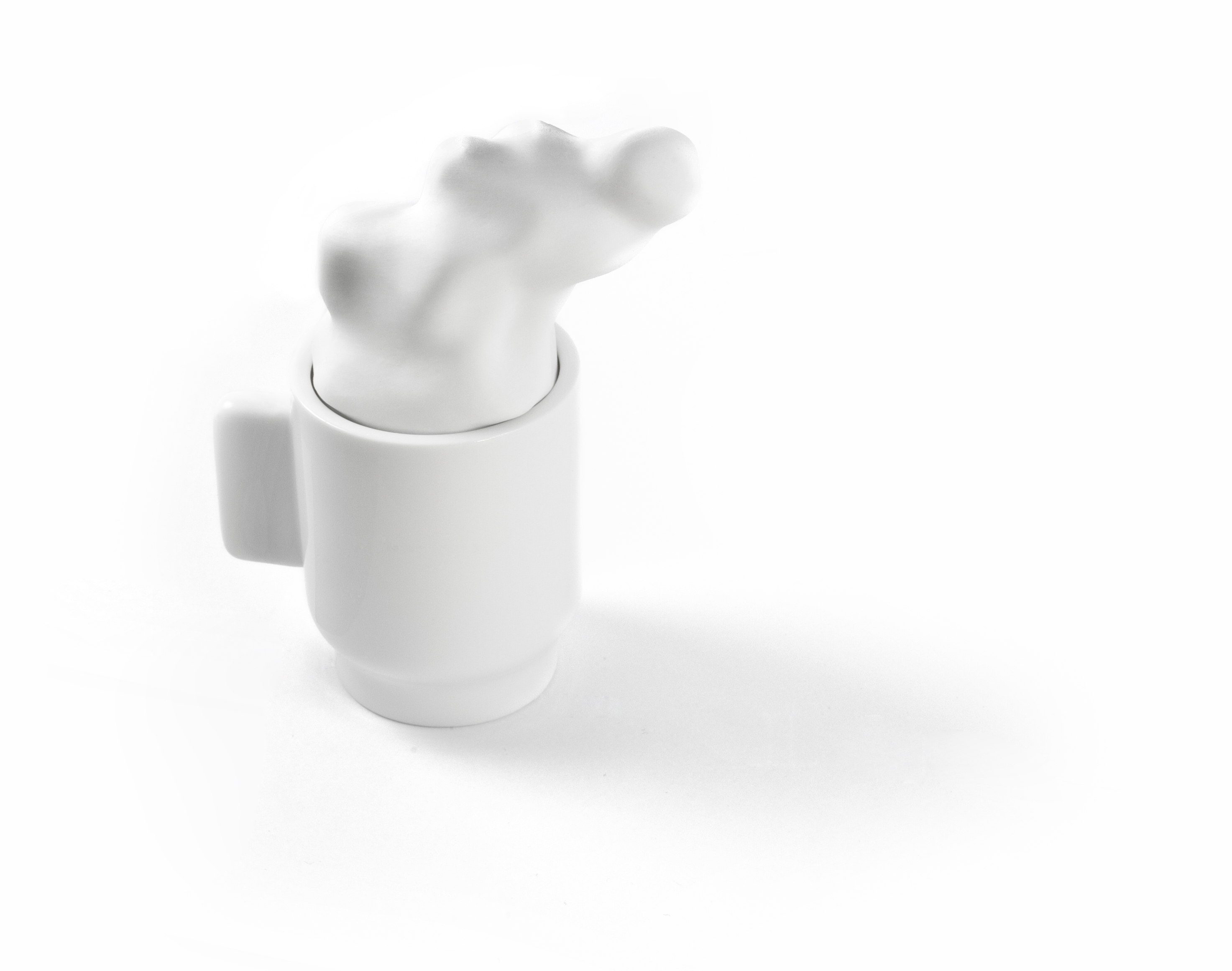 Coffee has a powerful aroma. Its fragrance can embalm an entire space and olfactory memory is often triggered by its scent. It is this strength we want to emphasize. We propose a ceramic cup that brings about the aromatic dimension of coffee. A ceramic volute materializes this aroma and contains it in the cup’s space. It is a precious cloud, guardian of a taste.